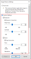 Quan l'editor visual de millora de la imatge no està disponible, podeu seleccionar [Image Enhance] i ajustar la brillantor, el contrast, el color i la nitidesa de les fotos. No obstant això, si feu aquests ajustos, els valors ajustats s'apliquen al treball actual i als treballs futurs. En acabar el treball, assegureu-vos de restaurar les opcions als valors predeterminats.