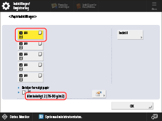 Vælg <Almindeligt 2 (76 g/m2 to 90 g/m2)> for "Valget af papirtype."