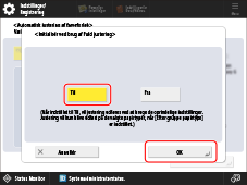 Vælg det papir, du vil korrigere, og tryk derefter på <Initialisér ved brug af Fuld justering>.