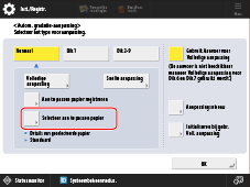 Druk op <Selecteer aan te passen papier> en selecteer het papier voor de kalibratie dat u hebt geplaatst of <Standaard> (voor het aanbevolen papier).