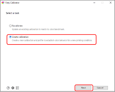 Selecteer [Create calibration] en klik vervolgens op [Next].