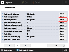 Selecione o tipo de papel que pretende editar na lista → carregue em <Detalhes/Editar> → <Alterar> para <Nível correção encarac.>.