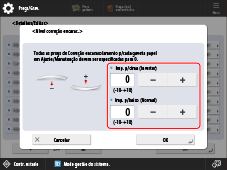 *2: Ao realizar a impressão de frente e verso, carregar em <-> ou <+> para <Imp. p/baixo (Normal)> não funciona para o ajuste do nível de correção de encaracolamento.
