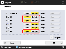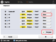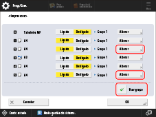 Selecione <Usar grupo> → carregue em <Alterar> para a origem de papel