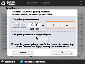 Чтобы сместить положения по центру влево к отпечатанному изображению, уменьшите значение данной настройки.