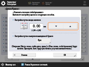 Настройка путем ввода значения (Настройка позиции сгиба для центр. прошивки)