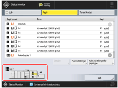 Den papirskuffe, der er i brug, er fremhævet med gul på det billede, der ses i nederste venstre hjørne af skærmen.