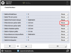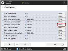 Valitse luettelosta muokattava paperityyppi → paina [Tiedot/Muokkaa] → [Muuta] kohdassa <Vihkonidonnan paikan säätö>.