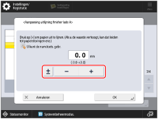 → [Aanpassen/Onderhoud] → [Aanpassen actie] → [Aanpassing uitlijning finisher lade A] of [Aanpassing uitlijning finisher lade B].