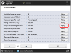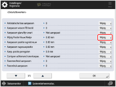 Selecteer de papiersoort die u wilt bewerken in de lijst → druk op [Details/Bewerken] → [Wijzig.] voor <Aanpassen positie rugnietvouw>.