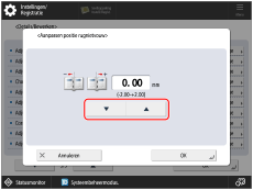 Als u wilt dat de rugnietpositie naar links verschuift terwijl u naar de bedrukte zijde van de afdruk kijkt, verlaagt u de instelwaarde.