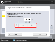 → [Ajuste/Manutenção] → [Ação de ajuste] → [Ajuste do alinhamento do tabuleiro A finaliz.] ou [Ajuste do alinhamento do tabuleiro B finaliz.].