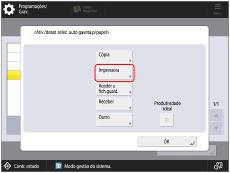 → [Programações de funções] → [Comum] → [Programações alimentação de papel] → [Ativ./desat. selec. auto gaveta p/papel].