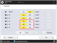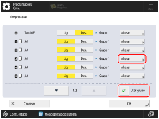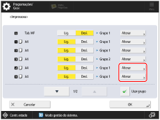 Selecione [Usar grupo] → carregue em [Alterar] para a origem de papel
