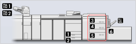 Exemplo: Para imprimir 10.000 páginas de uma vez com Normal 1 (80 g/m2 (Bond 21,3 lb)) utilizando Multi-drawer Paper Deck-E