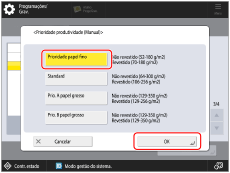 Selecione [Prioridade papel fino] → carregue em [OK] → [OK].