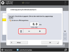 Tryck på [-] eller [+] för att genomföra pappersjusteringen.