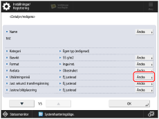 Välj den papperstyp som du vill redigera i listan → tryck på [Detaljer/redigera] → [Ändra] för <Utslätningsnivå>.
