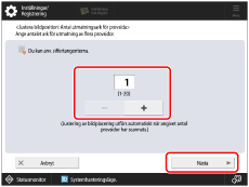 Välj antalet sidor du vill skriva ut och tryck på [Nästa].