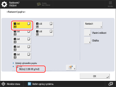 → [Možnosti] → [Nastavení papíru] → [Nastavení papíru] a nastavte typ papíru.