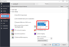 Klikněte na kartu [COLOR] a změňte nastavení tisku v části <Black text and graphics> podle toho, co budete tisknout a jak chcete, aby výtisky vypadaly.