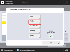 Den papirskuffe, der er i brug, er fremhævet med gul på det billede, der ses i nederste venstre hjørne af skærmen.