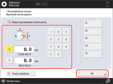 → [Właściwości] → [Ustawienia Papieru] → [Ustawienia Zarządzania Rodzajem Papieru] → wybierz z listy rodzaj papieru do edycji → naciśnij [Szczegóły/Edytuj] → naciśnij [Zmień] dla <Regulacja Położenia Obrazu>.