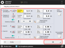 Jeśli po wykonaniu regulacji za pomocą strony testowej konieczne jest przeprowadzenie bardziej precyzyjnej regulacji, należy wybrać opcję [Nie używać skanera] → [Regulacja Położenia Obrazu] i dostosować poszczególne ustawienia regulacji.