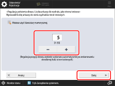 Wprowadź liczbę stron testowych, które mają zostać wykonane → naciśnij [Dalej].