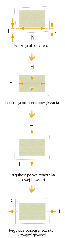 Jeśli za pomocą opcji [Użyj skanera] nie da się prawidłowo wyregulować pozycji obrazu, należy przeprowadzić regulację przy użyciu opcji [Nie używać skanera].