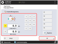 → [Preferenser] → [Pappersinställningar] → [Inställningar för hantering av papperstyp] → välj märke för pappret där bilden är feljusterad → tryck på [Detaljer/redigera] → [Ändra] för <Format> → [Eget format] → ange det uppmätta värdet.