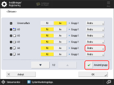 Välj [Använd grupp] → tryck på [Ändra] för papperskälla