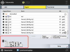 Papperskällan som används är gulmarkerad på bilden i det nedre vänstra hörnet på skärmen.