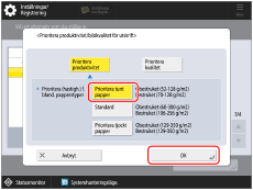 Välj [Prioritera tunt papper] → tryck på [OK].