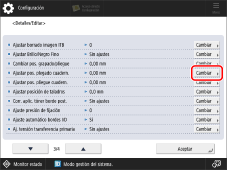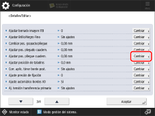 Seleccione en la lista el tipo de papel que desee editar → pulse [Detalles/Editar] → [Cambiar] para <Ajustar posición de grapado de cuadernillo>.