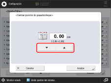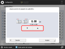 Si desea que la posición de grapado de cuadernillos se desplace hacia la derecha encarando la cara impresa de la impresión, aumente el valor del ajuste.