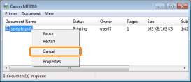 Other user's jobs are not displayed. (In a print server environment, all jobs are displayed on the print server.)