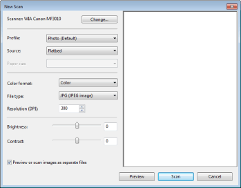 The images scanned from [Flatbed] (the platen glass) are automatically cropped and saved as separate files.