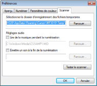 La machine joue de la musique pendant la numérisation. Cliquez sur [Parcourir], puis sélectionnez le fichier audio. [Emettre un son à la fin de la numérisation]