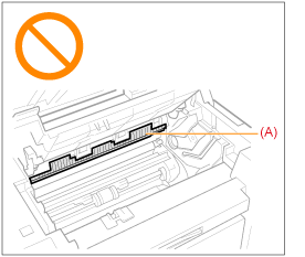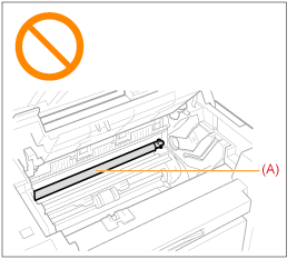 Ne touchez pas le rouleau de transfert (A).Un contact avec le rouleau de transfert (A) peut endommager la machine.