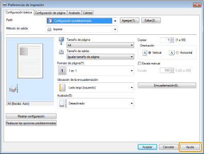 La pantalla podría variar según el sistema operativo, y también en función del tipo y la versión del controlador de impresora.