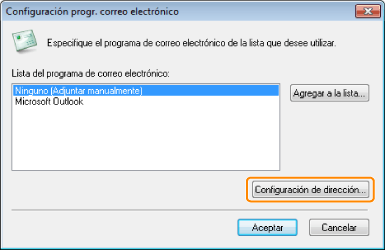 Al leer utilizando el botón de comando [Correo]MF Toolbox es compatible con las siguientes aplicaciones de correo electrónico.