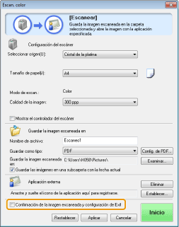 Si se marca esta casilla de verificación, las opciones de [Configuración del escáner] no se pueden seleccionar.