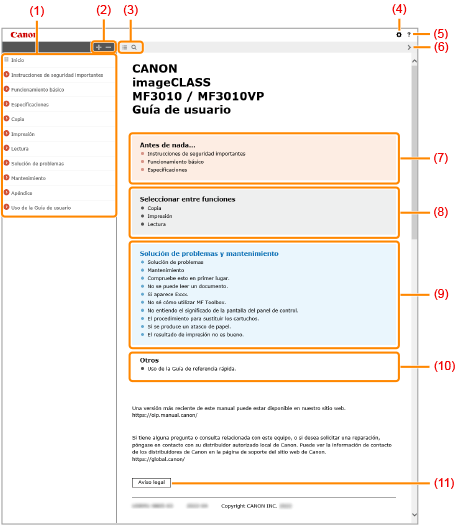 ![]() Haga clic para mostrar información acerca de cómo ver la Guía de usuario, cómo realizar una búsqueda y otra información.