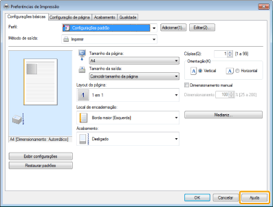 A exibição pode variar de acordo com o sistema operacional e com o tipo e a versão do driver de impressora.