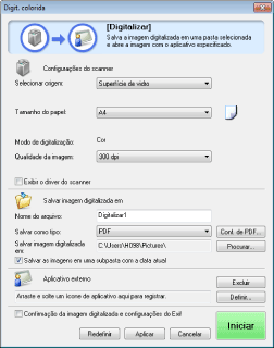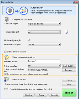 Quando digitalizar utilizando o botão de comando [PDF]Você só pode visualizar a imagem digitalizada e especificar o local em que a imagem será salva.