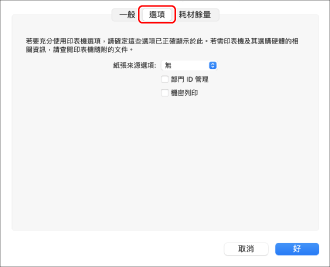 您可以設定安裝在裝置中的選項 (供紙匣、裝訂分頁器等)。