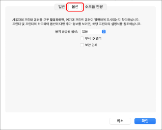 표시된 대화상자에서 [옵션 및 소모품]을 클릭합니다.
