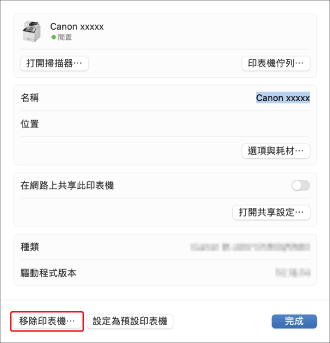 在顯示的對話框中,按一下 [移除印表機]。