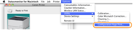 From the [Options] menu in the Statusmonitor, select [Utility] → [Configuration Page Print] or [User Data List].